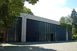 Das markante gestalterische Element der durchwegs mit Flachdächern ausgestatteten Gebäude sind die Fassaden, die unverputzt in Sichtbeton und Klinkermauerwerk ausgeführt sind.