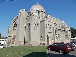 Der nach Plänen des Architekten Lipót Baumhorn erstellte Bau wurde auf dem Grundriss eines griechischen Kreuzes mit mächtiger Kuppel errichtet. Zahlreiche kleinere Kuppeln schmücken die Eckpfeiler und Seitenwände. Das Gebäude wurde lange Zeit als Möbelhaus zweckentfremdet. Das Gebäude wird zurzeit renoviert und soll als Kulturhaus dienen.