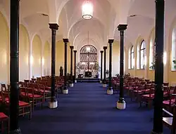 Die Anlage wurde von 1875 bis 1878 erbaut und am 17. März 1878 eingeweiht. Im Zentrum der von Architekt und Semper-Schüler Robert Wimmer im Stil der Neorenaissance konzipierten Anlage befand sich ein 20 Meter hoher, monumentaler Kuppelbau, der die Trauerhalle beherbergte. Er war reich verziert mit „Säulen, Pilastern, decorirten Gesimsen, plastischen Ornamenten und Malereien“[4] und enthielt unter anderem das Gemälde Himmlisches Jerusalem von Julius Schnorr von Carolsfeld. An den Kuppelbau schlossen sich zu beiden Seiten Arkadengänge mit Säulenhallen an, in denen sich insgesamt 22 Grüfte befanden. Sie wurden vom gehobenen Bürgertum Dresdens bevorzugt als repräsentative Grabstätten gewählt. Hier fand zum Beispiel der Techniker Friedrich Siemens, Bruder des Elektrotechnikers Werner von Siemens, seine letzte Ruhestätte. Sein Grabdenkmal eines Genius mit gesenkter Fackel schuf der Bildhauer Johannes Schilling. Schmuckelemente wie der Straßenseite zugewandte Engelsfiguren schuf Gustav Adolph Kietz, vier Reliefs mit Szenen des Sterbens und Auferstehens Christi stammten von Martin Engelke (1852–1932).