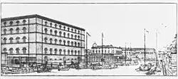 - Das Wohnhaus des Generalsteuerdirektors, ein Gebäude von fast quadratischer Grundform, das sich am Eingang zum Packhofgelände befand. Dieses später neben dem Neuen Museum gelegene Gebäude verfügte über einen kleinen inneren Hof und enthielt außer der Wohnung des Generalsteuerdirektors auch die Niederlage und die Kasse für das Stempelpapier sowie die Büros der Generalsteuerdirektion. An diesem Gebäude war zur Straßenseite hin ein dreiseitiges Giebelrelief (Fronton) angebracht, das die Bestimmung der ganzen Anlage andeutete.