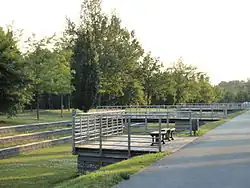 Der Park ist außerdem mit einem Kinderspielplatz mit künstlerisch gestalteten Holzstelen aus einer Frankfurter Bildhauerei ausgestattet.[5]
