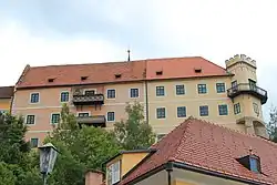 Das Haus Schlossplatz Nr. 2 stammt im Kern aus dem 13./14. Jahrhundert und wurde im 15./16. Jahrhundert repräsentativ umgebaut. Der Eckturm und der Treppengiebel wurden 1849 errichtet. Ein Fenster mit spätgotischem Steingewände ist mit 1772 bezeichnet. Die spätgotische Halle ist mit Stuckgewölbe ausgestattet.