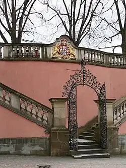 Mit dem Regierungsantritt Kardinal Damian Hugos von Schönborn, der bereits Bischof in Speyer war und dort das Bruchsaler Schloss hatte erbauen lassen, wurde ab 1740 das bestehende Gebäude den Erfordernissen einer Residenz angepasst, indem der Baumeister Johann Georg Stahl aus Bruchsal nach Plänen von Balthasar Neumann ein repräsentatives Treppenhaus einfügte.