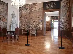 Die Innenausstattung des Schlosses ist das Werk des kurmainzischen Hofmalers Giuseppe Appiani (1706–1785) und des Stuckateurs Carlo Luca Pozzi (1734–1812). Von Appiani stammen das Deckenbild im Treppenhaus „Verherrlichung des Fürstbischofs und des Hochstifts“ (1761) und im Festsaal „Die Verehrung der göttlichen Vorsehung“ (1762).