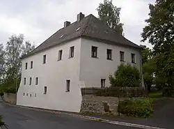 Das ehemalige Schloss ist ein zweigeschossiger, verputzter Massivbau mit einem Walmdach über einem hohen Kellergeschoss. Es wurde nach dem Brand von 1751 unter Verwendung von Bauteilen des Vorgängerbaus von 1614 wiederaufgebaut. Zum Schloss gehört eine denkmalgeschützte Bruchsteinmauer.