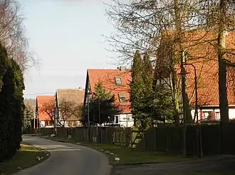 Der im Wesentlichen aus Abbruchmaterial und Restbeständen errichtete Siedlungskomplex wurde nach einem von Hermann Henselmann, damals Hochschule für Baukunst und Bildende Künste zu Weimar, entworfenen Plan gestaltet. Er hatte Anfang der 1940er Jahre für den Reichsgau Wartheland schon ähnliche Siedlungen gestaltet.