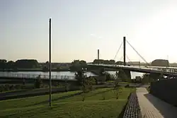 Der 150 Meter lange, stetig ansteigende St.-Antonius-Steg verbindet den Platz an der St.-Antonius-Kirche mit der neuen Uferpromenade am Rhein. Es ist geplant, einen Aufzug in den Pylon, der den Steg stützenfrei hält, einzubauen, der damit an dieser Stelle eine barrierefreie Überbrückung der Rheinallee ermöglichen würde.[10]