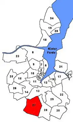 - ↑ Quartalsdaten aus den Stadtteilen I 2024. (PDF; 1,57 MB) Stadt Kiel, S. 4, abgerufen am 26. Juni 2024.
