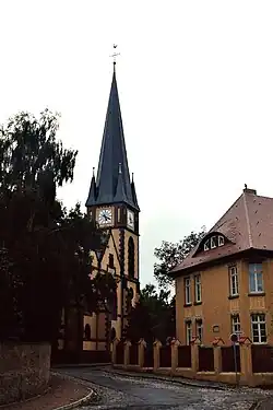 Die evangelische Kirche St. Petri und Pauli wurde 1901 im Stil des Historismus errichtet und enthält eine reichhaltige farbige Ausmalung der Gewölbe und Wände. 2008 wurden die Ausmalungen gesichert und saniert.