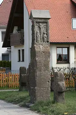 Am südlichen Ortsrand Richtung Kraftshof sind ein Bildstock (Martersäule) und mehrere Kreuzsteine aufgestellt.[33]