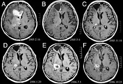 - ↑ Nader Pouratian et al.: Toxicity and efficacy of protracted low dose temozolomide for the treatment of low grade gliomas. In: Journal of Neuro-Oncology. Band 82, Nr. 3, Mai 2007, S. 281–288.
