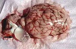 Infektion eines Schafhirns mit einer Cenure (Larvenstadium von Taenia multiceps).