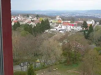 Blick vom Wasserturm auf Neuweiler; im Hintergrund St. Ingbert