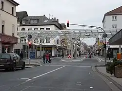Das Gebiet der Innenstadt ist Teil eines alten Nebenarms des Rheins und in höchstem Maße hochwassergefährdet. Im schwersten Hochwasser (Hochwasser 1784) stand die Rheinflut in den Straßen über vier Meter hoch. Nach drei schweren Hochwassern 1920, 1924 und 1925/1926 begannen Planungen für einen Deichbau, der den gesamten alten Rheinarm absperren sollte. Bereits 1931 wurde dieser Deich fertiggestellt.