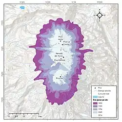 - ↑ IDEAM (Hrsg.): Informe del Estado de los Glaciares Colombianes 2023. 2023, ISSN 2806-0261, S. 26, 30, 51, 81 (archive.org [PDF]).