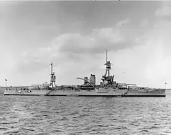 Ab 1917 wurde sie mit der Royal Navy eingesetzt. Dabei rammte sie ein deutsches U-Boot und einer ihrer Propeller wurde beschädigt. Nach dem Krieg wurde sie mehrfach modernisiert und befand sich beim Ausbruch des Pazifikkrieges ebenfalls in der Werft. Sie unterstützte alliierte Landungen in Afrika und Frankreich, verlegte in den Pazifik, wo sie die Landungen auf Iwo Jima als auch Okinawa deckte. Vor Iwo Jima wurde sie von einem Kamikaze-Flieger getroffen. Nach dem Kriegsende wurde das Schiff beim Atombombentest Operation Crossroads beschädigt und schließlich 1948 im Pazifik versenkt. |