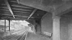Die Bahnsteige waren als Hochbahnsteige ausgeführt und wurden ebenso wie die Empfangsgebäude aus Beton statt aus dem damals üblichen Holz errichtet. Auch rückwärtige Begrenzungsmauer, Treppen und die dorischen Säulen für das Bahnsteigdach waren aus Beton. Nur die vordere Bahnsteigkante war als Holzplanke ausgeführt, um bei Bedarf das Lichtraumprofil ein Stück aufweiten zu können.[12]
