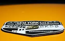 Die New Yorker Taxi- und Limousinenkommission (engl. New York City Taxi and Limousine Commission, kurz TLC) wurde im Jahre 1971 mit Gerichtsbarkeit über die städtischen Medaillon Taxi Cabs, den privaten Livery Taxi Cabs und einigen Luxuslimousinen gegründet.[22] um die wachsende Zahl der Taxi Cabs zu regulieren und Probleme zu bewältigen. Der Vorgänger dieser Kommission war das New York City Hack Bureau, betrieben unter der Schirmherrschaft des New York City Police Departments und ab 1925 auch für Taxis zuständig. Inspektoren der Taxi- und Limousinenkommission sind Strafverfolgungsbeamte des Bundesstaates von New York, die mit Schlagstock, Pfefferspray und Handschellen ausgestattet sind.