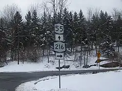 Die heutige State Routes 216 und 55 waren 1926 ein Teil der damaligen State Route 39.[3] Bei der Neunummerierung 1930 wurde der Abschnitt der NY 39 zwischen East Fishkill und dem westlichen Rand von Patterson Teil der neufestgelegten New York State Route 52. Der Abschnitt der alten Route 39 zwischen Poughkeepsie und East Fishkill wurde zur New York State Route 202. Zwischen Patterson und der Kreuzung mit der New York State Route 22 wurde die alte NY 39 als New York State Route 311 festgelegt. Einige Jahre später wurde eine Teilstrecke der NY 52 neu als New York State Route 216 ausgeschildert.[4][5][6]