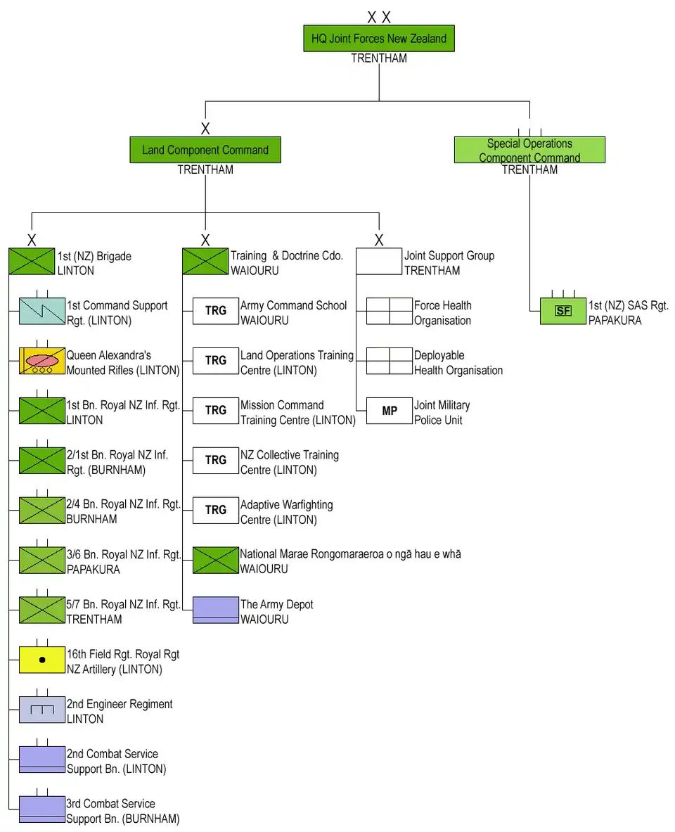 Die New Zealand Army gliedert sich in mehrere Regimenter und Korps. Ebenfalls zur Army gehört der New Zealand Special Air Service (NZSAS).