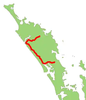 | Straßenende: | Brynderwyn (36° 5′ 48″ S, 174° 24′ 49″ O) |