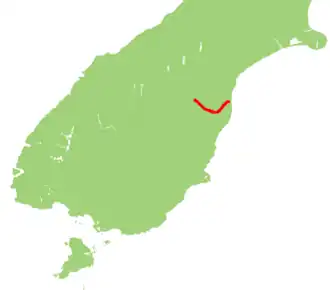 | Straßenende: | SH 1 nahe Waimate (44° 42′ 0″ S, 171° 7′ 46″ O) |