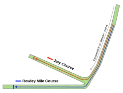 Der „July Course“ wird im Sommer verwendet. Die Gerade ist eine Meile lang. Zunächst geht es lange bergab, bevor die letzten 200 Metern bergauf zum Ziel führt. Dieses befindet sich vor den Tribünen und dem Waagenhaus aus dem 19. Jahrhundert. Auf dem July Course finden auch Freitagabend-Rennen mit anschließenden Konzerten statt. Bisher traten dort unter anderem Rudimental, Craig David, Paloma Faith, Chic, George Ezra, Kylie Minogue, Kaiser Chiefs, Tom Jones, Westlife, The Corrs, Olly Murs, Little Mix und Madness auf.[7]
