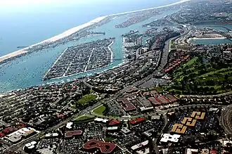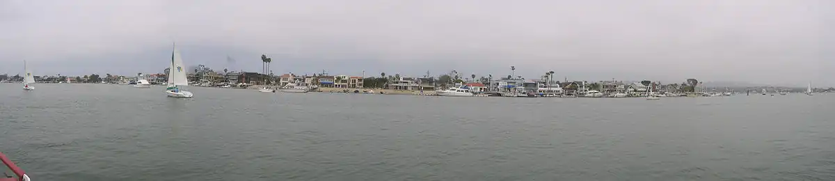 Aus angespültem Sand entstand nahe der Mündung des Santa Ana Rivers die Balboa Peninsula. Die Halbinsel wuchs bis 1857 auf die Hälfte ihrer heutigen Länge an und begann die Newport Bay zu verdecken. Um 1900 erkannte William S. Collins das touristische Potenzial der Landschaft. Der Geschäftsmann ließ die künstliche Balboa Island aufschütten.[4] 1923 erwarb W. K. Parkinson in der Bucht eine Sandbank, die er in der Folgezeit zur Lido Isle ausbaute.[5]