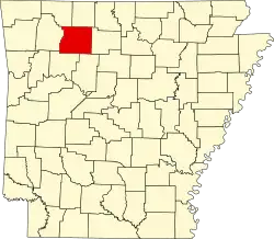 Das County liegt im Nordwesten von Arkansas, ist im Norden etwa 50 km von Missouri entfernt und hat eine Fläche von 2132 Quadratkilometern, wovon ein Quadratkilometer Wasserfläche ist. Es grenzt an folgende Countys: