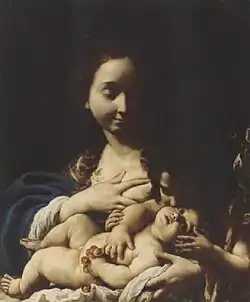 - ↑ Das Gemälde wurde 1683 in die Kirche des Lehens gebracht (Roberto Cannatà: Il collezionismo del cardinale Bernardino Spada. In: La Galleria di Palazzo Spada. Genesi e storia di una collezione. Rom 1992, S. 45.), kam nach der Heirat von Orazio Spada (1613–1687), Neffe von Bernardino und Virgilio, mit Maria Veralli (1616–1686) im Jahr 1636 in den Besitz der Familie Spada. (M.L. Vicini: La famiglia Spada Veralli. Ritratto della marchesa Maria Veralli e di cinque suoi figli. Rom 1999, S. 5–16.)