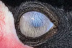 Die Nickhaut kann als Nickhautschürze zur Abdeckung der Hornhaut verwendet werden.