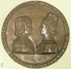 Medaille, geschaffen von Sperandio di Bartolommeo de' Savelli (ca. 1431–1504) anlässlich der Hochzeit von Ercole I. d’Este mit Eleonore von Aragon