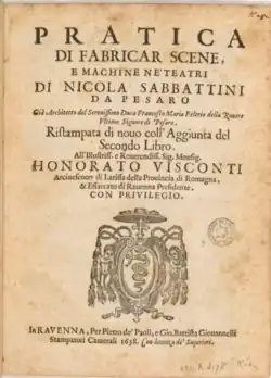 - ↑ Nicola Sabbattini: Anleitung Dekorationen und Theatermaschinen herzustellen. 1637, S. 9.