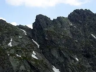Der Wanderweg auf die Niebieska Turnia führt entlang des Hauptkamms der Tatra und der polnisch-slowakischen Grenze und biegt nach dem Gipfel der Świnica nach Norden ab. Der Wanderweg führt unterhalb des Hauptgipfels.