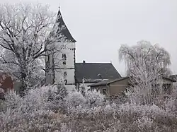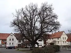 - Auf dem markanten Dorfplatz steht seit 1871 eine Friedenslinde.