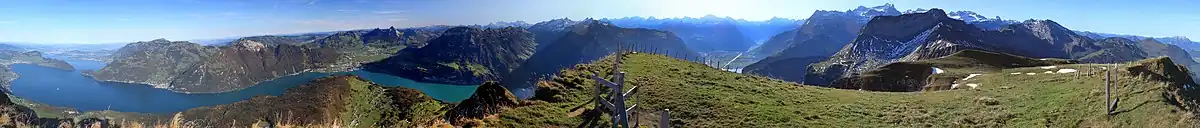 Vom Gipfel geniesst man einen umfassenden Rundblick auf den Vierwaldstättersee und die ihn umgebenden Berge, wie (Auswahl von N nach W im Uhrzeigersinn) Rigi Hochflue, Fronalpstock, Rophaien, Uri Rotstock, Brisen, Stanserhorn und Pilatus.
