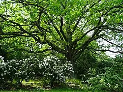 Der Niederfriedhof und dabei vor allem der obere Parkfriedhofsteil hat einen reichen Baumbestand. Farbige Akzente bieten zahlreiche Rhododendronbüsche.