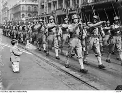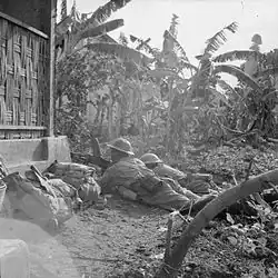Die Briten unter Mountbattens South East Asia Command hatten zunächst wenig Truppen in der Region und hielten es für vorrangig, Kriegsgefangene in Malakka und Indochina zu befreien. Borneo und den Osten von Niederländisch-Indien überließen sie den Australiern.[28] Erst Mitte September 1945 landete eine britische Vorhut bei Batavia (heute: Jakarta), der Hauptstadt Niederländisch-Indiens. Am 2. Oktober kam luitenant-gouverneur-generaal Hubertus van Mook an, der höchste Vertreter der Niederlande.[29]