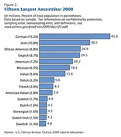 - ↑ American Community Survey, self-reported ancestry (2015) ( des vom 12. Februar 2020 im Webarchiv archive.today) Info: Der Archivlink wurde automatisch eingesetzt und noch nicht geprüft. Bitte prüfe Original- und Archivlink gemäß Anleitung und entferne dann diesen Hinweis.