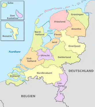 Zum Gebiet der Niederlande gehören, neben den zwölf Provinzen des europäischen Teils, die Karibikinseln Bonaire, Sint Eustatius und Saba (einschließlich ihrer jeweiligen Nebeninseln), die Besondere Gemeinden des Landes sind. Weitere niederländische karibische Gebiete sind kein Teil des Landes Niederlande, sondern autonome Länder im Königreich der Niederlande. Dies sind die Länder Aruba, Curaçao und Sint Maarten.