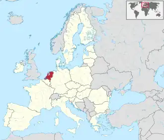 Die Niederlande (niederländisch Nederland und friesisch Nederlân, Singular, informell Holland) sind eines der vier autonomen Länder des Königreiches der Niederlande. Das größtenteils im nördlichen Westeuropa liegende Land wird dort durch die Nordsee im Norden und Westen, Belgien im Süden und Deutschland im Osten begrenzt. Der europäische Landesteil Niederlande umfasst 41.543 Quadratkilometer und zählt 18.045.532 Einwohner (1. Januar 2025). Die Hauptstadt der Niederlande ist Amsterdam, der Regierungs- und Parlamentssitz ist Den Haag. Die offizielle Landesfarbe ist Orange (Oranje).[6][7]