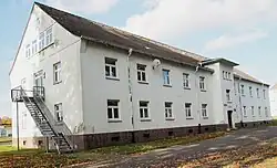 Das Gebäude in dem sich die Ausstellung befindet, beherbergte in den letzten Tagen vor der Befreiung des KZ Bergen-Belsen Häftlinge und später zunächst polnische und ab 1946 jüdische Displaced Persons.