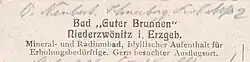 Lange Zeit wurde die Anlage am Guten Brunnen in Niederzwönitz als „Bad“ bezeichnet, da dort ein Badebetrieb mit Gastronomie angeboten wurde. Mehrere Heilquellen treten aus dem historischen Quellgebiet bei Zwönitz hervor. Schon Christian Lehmann erwähnt sie in seinem im Jahr 1747 erschienenem Buch Ausführliche Beschreibung Des Meißnischen Ober-Ertzgebürges …. Er nennt den Guten Brunnen „Wunderbrunnen“.[15] 1819 wurde eigens für den Badebetrieb ein neues Badehaus mit 10 Zellen und 11 Wannen gebaut, welches bis 1949 als Mineral- und Radiumbad genutzt wurde. Die Zahl der Kurgäste von 1902 bis 1916 wird mit 90 bis 156 angegeben. 1951 waren es noch 87 Kurgäste. Im Laufe der Zeit hatten sich in Deutschland einheitliche und strengere Richtlinien durchgesetzt, welche die notwendigen Mengenangaben von Mineralien für Heilquellen vorschrieben. Die Quellen des Guten Brunnens entsprachen nicht diesen Richtlinien, worauf der Landrat von Stollberg 1941 erklärte, dass die Bezeichnung „Bad“ nicht mehr aufrechterhalten werden kann. Auch wurde die Bezeichnung „Radiumbad Guter Brunnen“ auf Etiketten untersagt. Folgende Gebäude gehörten zum Ensemble „Bad Guter Brunnen“: