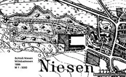 1555–1558 wurde die alte Wasserburg neu erbaut, nachdem seit 1515 die zum Amt Niesen gehörenden Orte Luthadessen, Mengersen, Rottersen, Swerdessen und Wippelfört durch kriegerische Ereignisse zerstört worden waren. Um die Wasserburg herum bildete sich das Dorf Niesen.