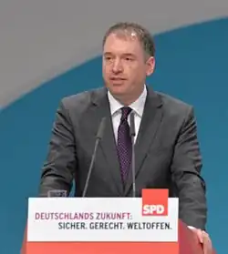 Für die Nominierung des Wahlkreiskandidaten bei der Bundestagswahl 2013 führte die SPD Eimsbüttel erstmals eine Mitgliederbefragung durch, bei der er sich mit 86 zu 11 Prozent der Stimmen gegen Ronald Hartwig durchsetzte.[9] Am 12. Dezember 2012 wurde er mit 96 Prozent der Delegiertenstimmen zum Wahlkreiskandidaten gewählt.[10] Bei der Bundestagswahl 2013 gewann er den Wahlkreis mit 37,5 Prozent der Stimmen, zudem befand er sich auf Platz 4 der Landesliste. In der 18. Legislaturperiode war er Mitglied des Auswärtigen Ausschusses sowie stellvertretendes Mitglied im Ausschuss für Wirtschaft und Energie. In den Jahren 2014 bis 2019 war er Vorsitzender der Kommission Internationale Politik der SPD. Von Januar 2014 bis März 2018 war er Sprecher der Arbeitsgruppe Außenpolitik der SPD-Bundestagsfraktion. Mit Bildung des Kabinetts Merkel IV berief ihn der neue Bundesaußenminister Heiko Maas am 14. März 2018 zum Staatsminister beim Bundesminister des Auswärtigen. Neben seinen Amtskollegen Michael Roth (Europa) und Michelle Müntefering (Internationale Kulturpolitik) war er für allgemeine außenpolitische Fragen verantwortlich.[11]