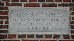 - ↑ Christian Andree: Finsen, Niels Ryberg. In: Werner E. Gerabek, Bernhard D. Haage, Gundolf Keil, Wolfgang Wegner (Hrsg.): Enzyklopädie Medizingeschichte. De Gruyter, Berlin / New York 2005, ISBN 3-11-015714-4, S. 401.