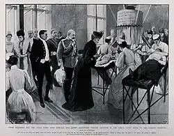 1898 wurde Finsen die Professorenwürde in Kopenhagen verliehen,[2] im gleichen Jahr veröffentlichte er sein Werk „Über die Anwendung von concentrierten chemischen Lichtstrahlen in der Medicin“ im Verlag F.C.W. Vogel in Leipzig.[3] 1899 wurde er als Ritter des Dannebrogordens geadelt, wenige Jahre später bekam er das Silberne Kreuz verliehen. Am 10. Dezember 1903 bekam Finsen den Nobelpreis für Physiologie oder Medizin „in Anerkennung seines Beitrags an der Behandlung von Krankheiten, insbesondere Lupus vulgaris, mit konzentrierter Lichtstrahlung, durch die er der medizinischen Forschung einen neuen Weg eröffnete“. Er war damit nach Emil von Behring und Ronald Ross der dritte Nobelpreisträger dieser Sektion und zugleich der erste Mediziner, der für eine Therapieform im Bereich der Dermatologie mit diesem Preis geehrt wurde.[3] Nominiert wurde er dabei von mehreren angesehenen Medizinern und Naturwissenschaftlern wie unter anderem von dem österreichisch-ungarischen Dermatologen Eduard Lang, dem dänischen Chirurgen Oscar Wanscher, dem ebenfalls in Dänemark tätigen Bakteriologen Carl Julius Salomonsen, dem schwedischen Chemiker Severin Jolin, dem schwedischen Augenarzt Johan Widmark und dem dänischen Ophthalmologen Jannik Petersen Bjerrum.[6] Aufgrund seiner Krankheit war es Finsen nicht möglich, an der Nobelpreisverleihung teilzunehmen, sein Dankesgruß wurde entsprechend von dem Chemiker Karl Axel Henrik Mörner, Professor und Rektor des Karolinska-Instituts in Stockholm, verlesen, der seine Leistungen und seine Ausdauer trotz Krankheit zudem in einer kurzen Rede und einem Trinkspruch würdigte.[7]