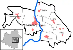 | Lage der Stadt Nienburg (Saale) im Salzlandkreis | ||
