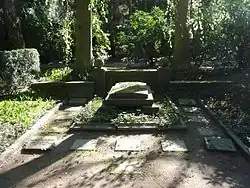 Man findet auf dem Gelände drei Mausoleen, zwei kleine und das große Mausoleum von Rudolph Freiherr von Schröder (siehe unter Schröder Gebrüder & Co.). Zwar keine Mausoleen, dennoch aber erwähnenswert sind auch die große Gruft des Caspar Freiherr von Vogth, die neuzeitliche Gruft von Hans Henny Jahnn und die Familiengruft George Heinrich Hesse. Letztere ist heutzutage komplett von Efeu überwuchert und daher kaum noch auffällig.