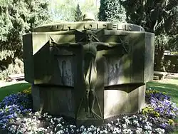 Der Hamburger Bildhauer Richard Luksch schuf 1920 die Gedenkstätte zum Ersten Weltkrieg. Direkt daneben befindet sich eine kleinere Gedenkstätte zu Ehren der Gefallenen des Zweiten Weltkrieges. Kriegsgräber gibt es nicht, abgesehen von Bestattungen von Gefallenen in Familiengräbern.